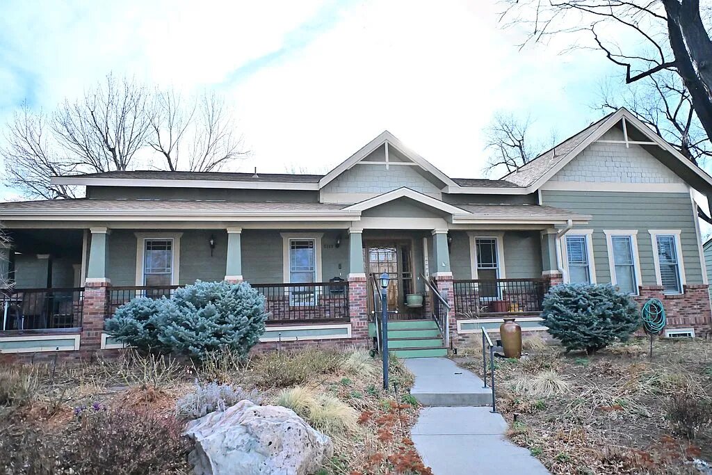 Many features such as solar, radiant heat, wrap around front porch, beautiful landscaping, attached 2 car garage, and essential living area all on one floor